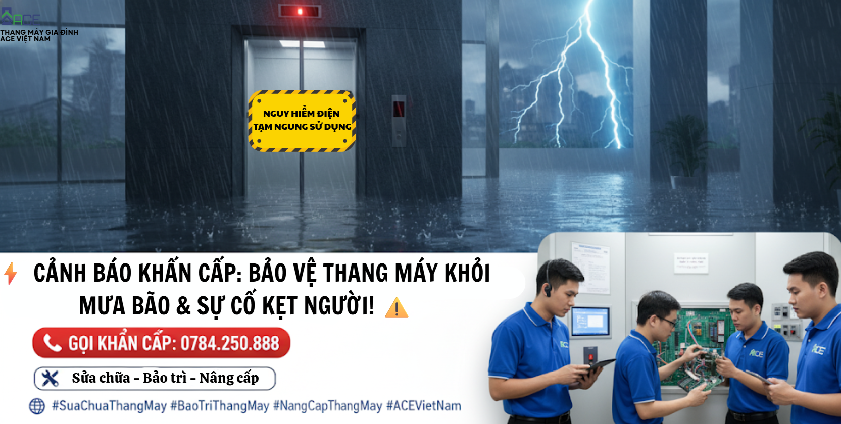 ACE VIỆT NAM – Luôn có mặt khi thang máy cần bạn nhất, kể cả Lễ, Tết và đêm khuya.